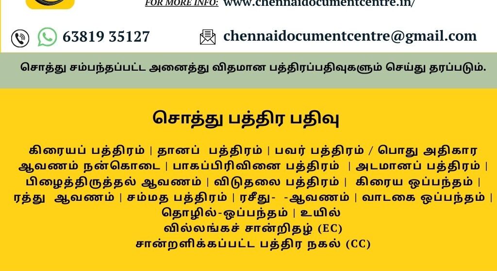 Call: +91 63819 35127 | Mail: Chennaidocumentcentre@gmail.com
